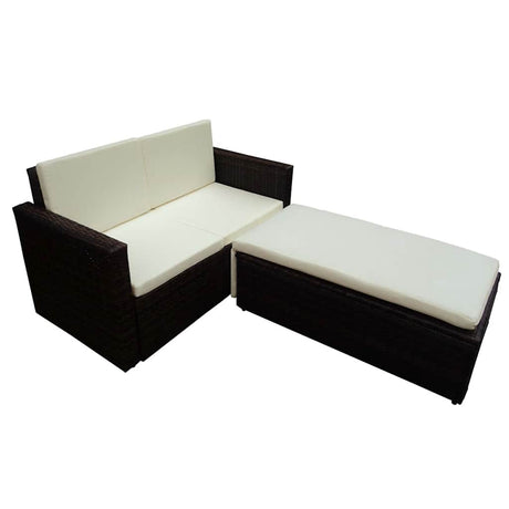 Poly Rattan Garden Lounge Set 3 Piece With Cushions And Coffee Table - Vantage Home