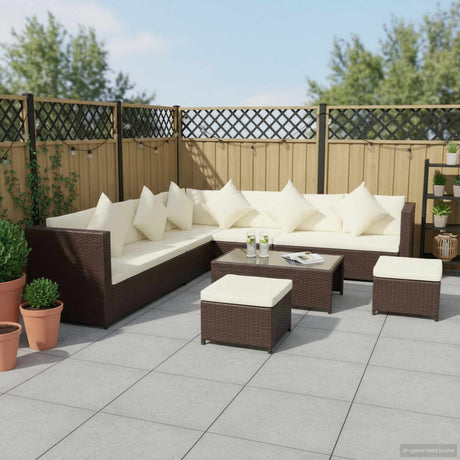 Poly Rattan Garden Lounge Set 8 Piece With Cushions - Vantage Home