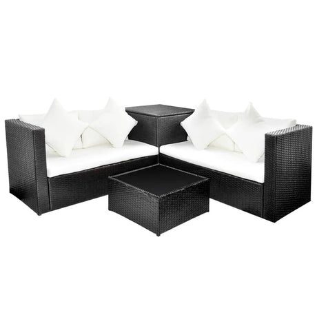 Poly Rattan Garden Lounge Set Corner 4 Piece With Cushions - Vantage Home
