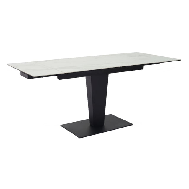 Add modern glamour and practicality to your home with the Valentina White Ceramic Extending Dining Table, available exclusively at CozyFurnitureDirect. Featuring a glossy ceramic top with a refined marble grain finish, this table combines luxury design with functional innovation. Its sleek black powder-coated steel base offers a contemporary contrast while providing excellent stability. The dual-extension mechanism, with two concealed 30cm leaves, allows you to expand the table effortlessly - perfect for both weekday meals and special occasions. Designed to seat 4 to 8 people comfortably, the Valentina delivers both everyday convenience and a statement of sophisticated style to UK homes.