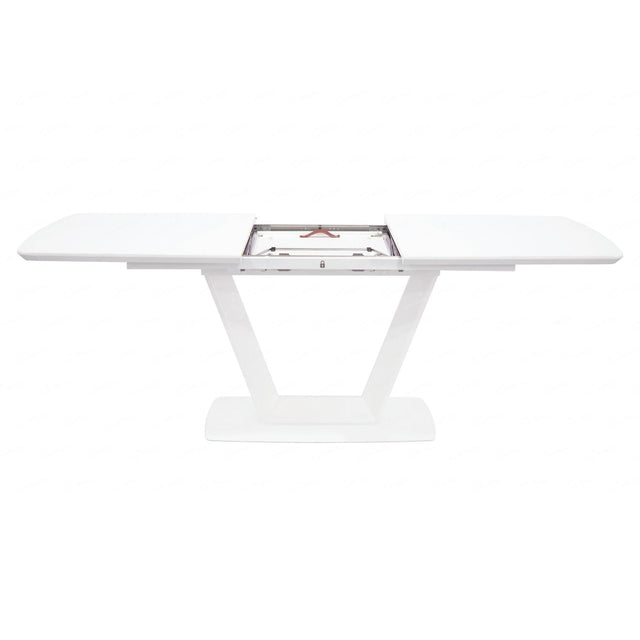 Enhance your dining space with the Luminato White Glass Top Extending Dining Table, available exclusively from CozyFurnitureDirect. Designed for contemporary British homes, this elegant dining table combines modern aesthetics with practical versatility. The pristine white tempered glass top creates a clean, light-reflecting surface, while the matte frame provides a sophisticated contrast that suits both minimalist and stylish interiors. Compact yet extendable, the Luminato smoothly expands from 120cm to 160cm, making it perfect for both intimate dinners and family gatherings. With durable materials and easy self-assembly, it - s the ideal centrepiece for any modern dining room.
