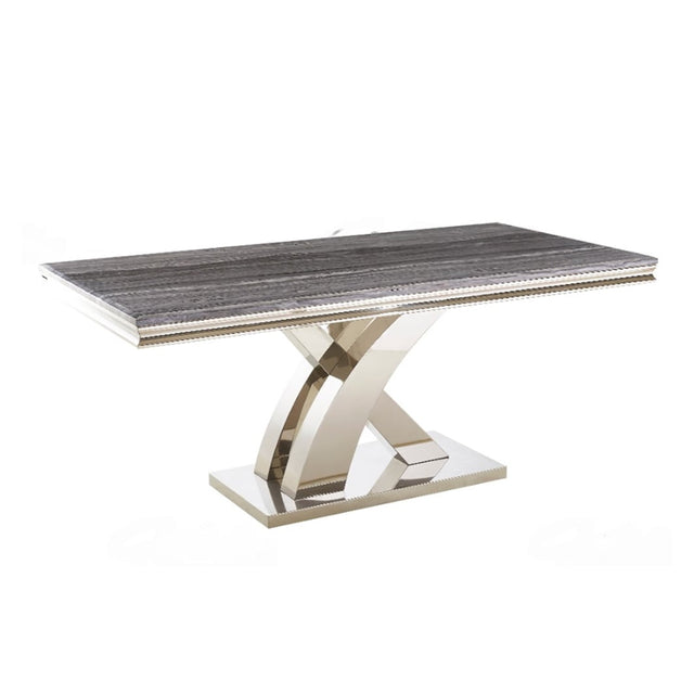 - Striking crossed base crafted for visual appeal and strong stability, adding architectural interest to your dining room