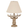 Beige Linen Shade Table Lamp With Stag Head Wooden Base - Stonewashed
