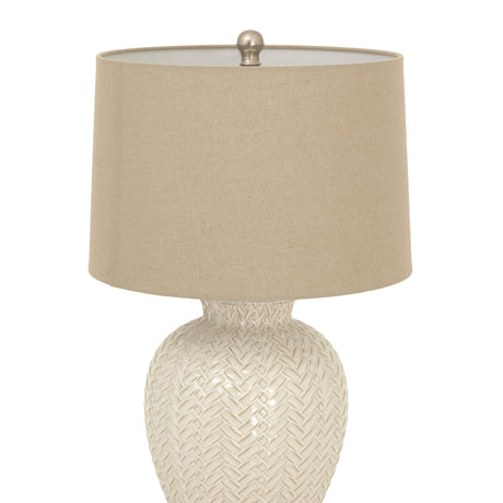 Beige Linen Shade Table Lamp With Ceramic Base - Veyla