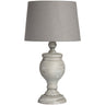 White Linen Shade Table Lamp With Neutral Washed Wooden Base - Teos