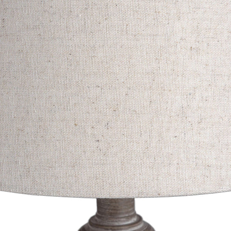 Grey Linen Shade Table Lamp With Wooden Base - Uthina