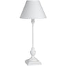 White Linen Shade Table Lamp With Slim White Wooden Base - Symi