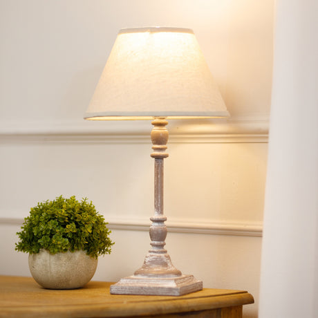 Neutral Linen Shade Table Lamp Grey Washed Wooden Base - Incia