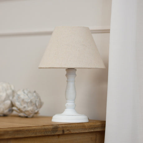 Natural Linen Shade Table Lamp With Washed Wooden Base - Antia