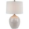 Neutral Cream Linen Shade Table Lamp With Ceramic Base - Lattice