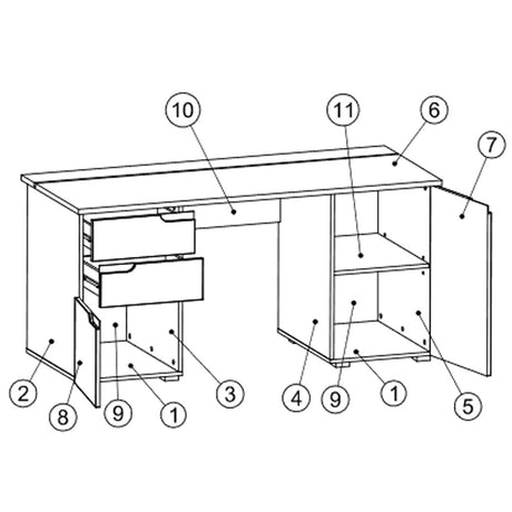 High Gloss Desk for Home And Office 2 Doors And 2 Drawers - Salina