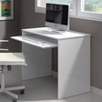 Maximise your workspace with the Wooden Desk for Home And Office - Blacksburg, available at CozyFurnitureDirect. This compact Blanco desk in Arctic white offers versatile functionality with a sleek, modern design. Featuring a practical pull-out keyboard tray, it helps keep your desktop clear for enhanced productivity. The reversible legs allow you to personalise the desk's orientation to fit your room layout perfectly. With dimensions of 90cm wide, 54cm deep, and a standard height of 79cm, the Blacksburg desk is ideal for small spaces and home offices. Delivered flat - packed for convenience, it combines style and practicality for contemporary British homes.