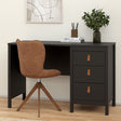 Upgrade your home or office workspace with the Barcelona Wooden Desk for Home and Office with 3 Drawers, available exclusively at CozyFurnitureDirect. This contemporary desk combines sleek, elegant design with practical storage, perfect for creating a stylish yet functional environment in any UK home or office. Featuring a timeless finish, smooth laminated surface, and minimalist metal handles complemented by leather accents, it effortlessly blends with various decor styles. The desk offers a spacious worktop ideal for computers, laptops, or writing, while three smooth-glide drawers provide generous storage to keep office supplies, stationery, and essentials neatly organised. Crafted from PEFC certified sustainable wood and made in Denmark with quality craftsmanship, the Barcelona desk is designed to last and withstand everyday use. Simple self - assembly makes it a convenient addition for customers seeking style, durability, and practicality in one beautiful package.