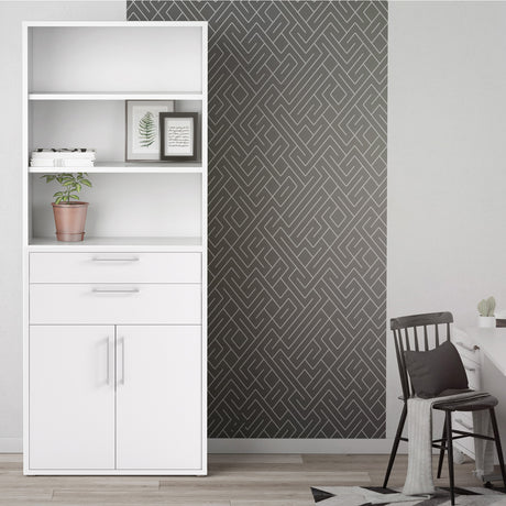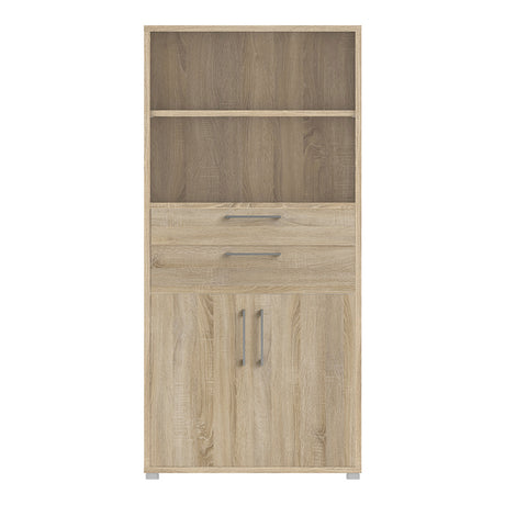 Wooden Bookcase With 2 Open Shelves 2 Doors And 2 Drawers - Prima