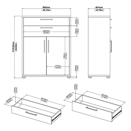 Wooden Sideboard With 2 Doors And 2 Drawers - Prima