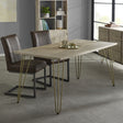 Make a bold statement in your dining area with the Solid Mango Wood Dining Table for 4 to 6 People in Light Gold from CozyFurnitureDirect. This modern contemporary dining table combines solid mango wood with elegant gold metal inlays, creating a unique abstract style that redefines furniture craftsmanship. The angled metal legs add a retro vintage touch while providing sturdy support. Crafted from eco - friendly wood and boasting natural colour variations, this table requires partial assembly of the legs and perfectly balances artistic flair with practical functionality for stylish British homes.