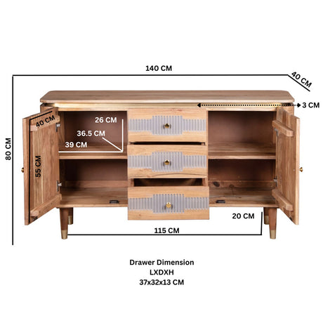 In stockRegular price £439.95Unit price /UnavailableSolid Acacia Wood Sideboard With 2 Doors And 3 Drawers - Wilton