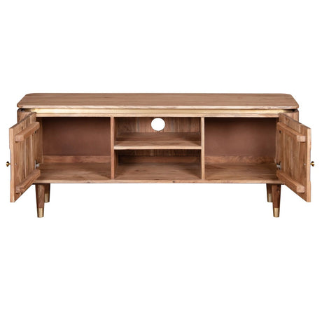 Solid Acacia Wood TV Stand With 2 Doors And 2 Shelves - Wilton