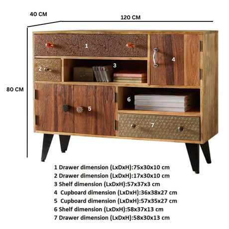 Solid Reclaimed Wood Sideboard With 3 Doors And 4 Drawers - Sorio