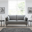 Add effortless elegance and comfort to your living room with the Rohe Fabric 2 Seater Sofa with Black Metal Legs from CozyFurnitureDirect. Blending retro charm with an industrial edge, the Rohe sofa is upholstered in a soft platinum wool-effect fabric that feels as luxurious as it looks. Its minimalist silhouette and clean lines exude modern sophistication, while the removable padded cushions provide excellent support and relaxation. The sleek black metal legs enhance its contemporary appeal and ensure durability. Perfect for modern apartments or stylish family homes across the UK, the Rohe 2 Seater Sofa is designed for both comfort and timeless design.