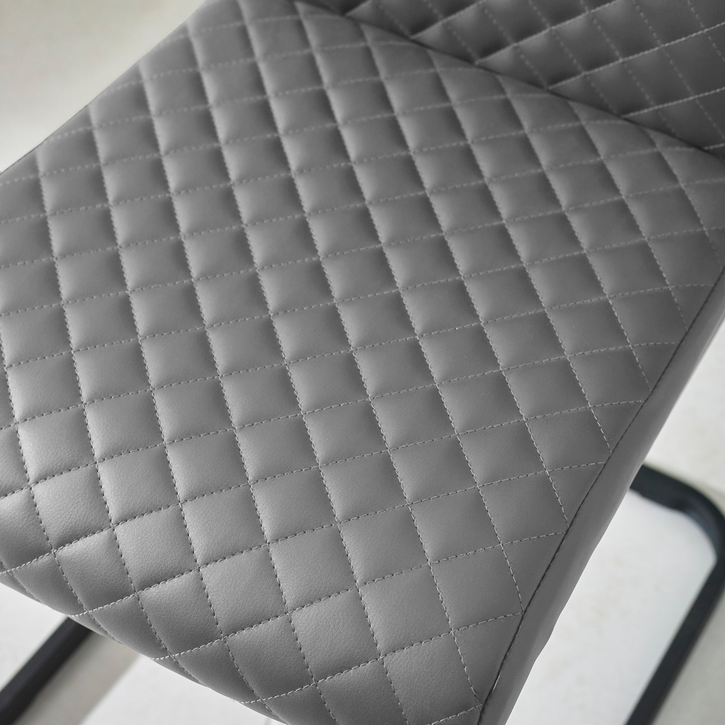 Bring contemporary elegance to your dining area with the Xavier Set of 4 Faux Leather Dining Chairs, available exclusively at CozyFurnitureDirect. Designed for modern UK homes, these chairs offer the perfect balance of comfort, style and durability. Upholstered in soft charcoal faux leather with a chic diamond-quilted pattern, they add understated luxury to any dining space. The high backrest ensures excellent support, while the sturdy black cantilever base delivers both stability and a bold, contemporary edge. Easy to clean and built to last, the Xavier chairs make every meal stylishly comfortable.