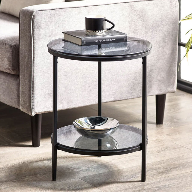 • Round lamp table finished in elegant smoked glass