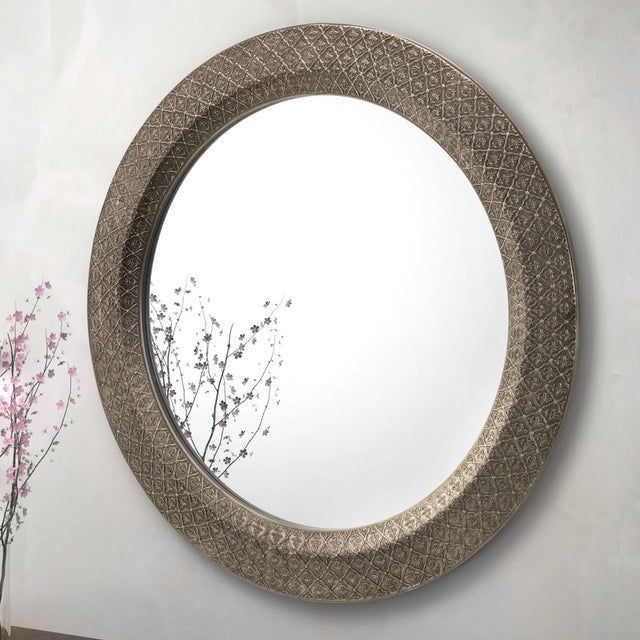 Bring timeless elegance and global-inspired charm to your home with the Wall Mirror Traditional Large Round - Cadence, available at CozyFurnitureDirect. Drawing inspiration from Moroccan artistry, this stunning mirror features an intricately detailed pewter-finished frame that captures both warmth and sophistication. Its large 80 cm diameter design makes it a perfect statement piece for living rooms, entryways, or bedrooms, effortlessly complementing both traditional and modern interiors. Crafted with quality materials for lasting durability, the Cadence mirror not only enhances light and space but also adds refined character to your decor, making it an eye-catching focal point in any UK home.