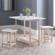 Maximise style and practicality in compact spaces with the Bergen Wooden Bar Table with 2 Bar Stools, available at CozyFurnitureDirect. Perfect for smaller kitchens and dining areas, this cleverly designed set features a fold-down table top mounted on wooden runners for easy adjustment. The two matching stools store neatly under the bottom shelf when not in use, making it an excellent space-saving solution for UK homes. With its charming two-tone finish in crisp white and natural wood, the Bergen Bar Set blends country warmth with modern simplicity - ideal for both everyday dining and casual entertaining.