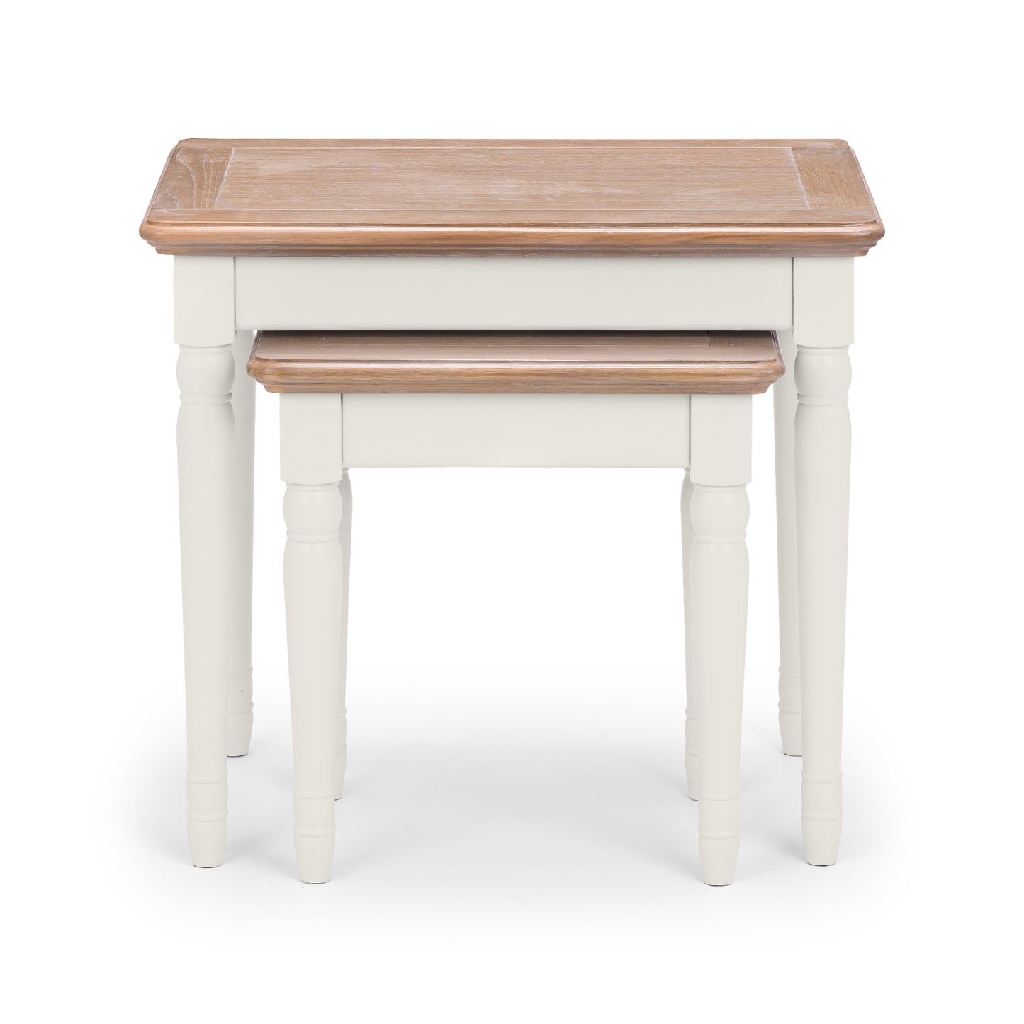 Add flexibility and timeless charm to your living space with the Provence Wooden Nest of 2 Tables, available from CozyFurnitureDirect. Designed with a classic turned leg detail and finished in a refined light grey lacquer with a beautiful limed oak effect top, these tables bring elegance and practicality to any UK home. The nesting design allows one table to tuck neatly under the other, saving space while keeping extra surfaces close at hand. Perfect for entertaining, displaying decor or everyday use, the Provence tables combine antique-inspired craftsmanship with modern convenience for a truly versatile and stylish addition to your home.