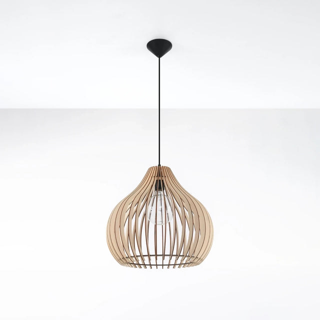 Wooden Pendant Light With Aprilla Lamp - Peach Puff