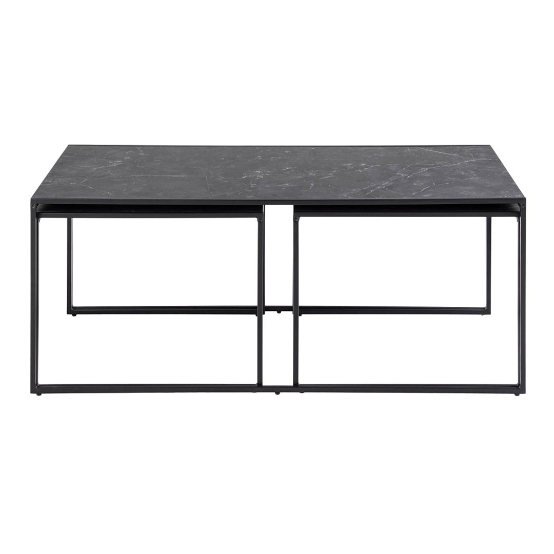 Elevate your living - room with the Wooden Nest of 3 Coffee Tables - Infinity, available at CozyFurnitureDirect. This versatile set combines a sleek matt black melamine table top with a subtle marble look and a sturdy sledge-style frame in rough powder-coated steel, creating a modern industrial statement piece that's both stylish and functional. The set includes three coordinating coffee tables, which can be used together for a layered, contemporary look or separated around your space for flexible use. Perfect for drinks, decor or everyday essentials, they blend seamlessly into modern and loft-inspired UK interiors. With exclusive design rights and carefully selected materials, the Infinity nest of tables is a robust and durable addition to your home.