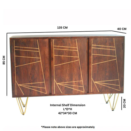 Solid Mango Wood Storage Cabinet With 3 Doors - Dark Gold