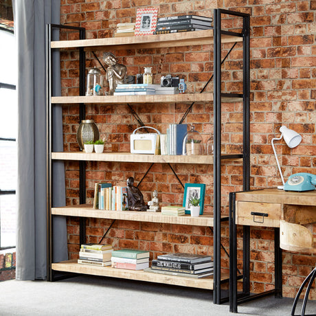 Solid Reclaimed Wood Bookcase Wide With 5 Shelves - Cosmo Industrial