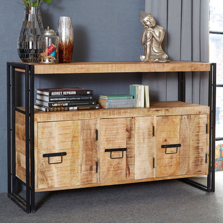Solid Hardwood Sideboard With 2 Doors 3 Drawer And Metal Frame - Evoke