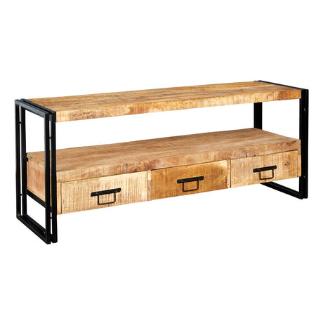 Solid Reclaimed Wood TV Stand With 3 Drawers - Cosmo Industrial