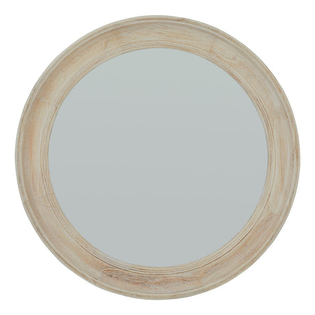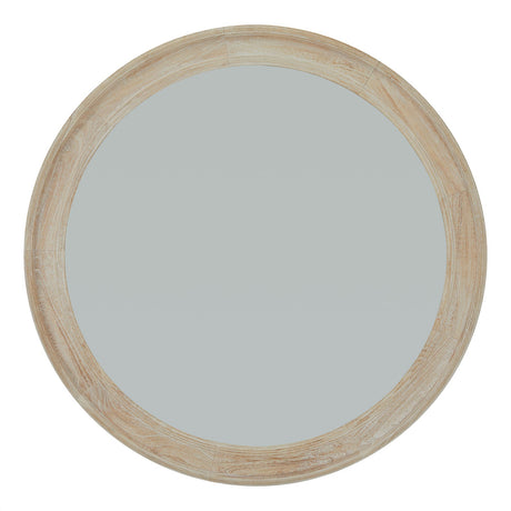 Wall Mirror Round In Washed Wooden Weathered Frame - Bradford