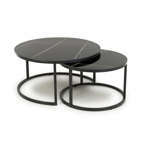 Wooden Nest Of 2 Tables With Black Metal Frame - Seaford