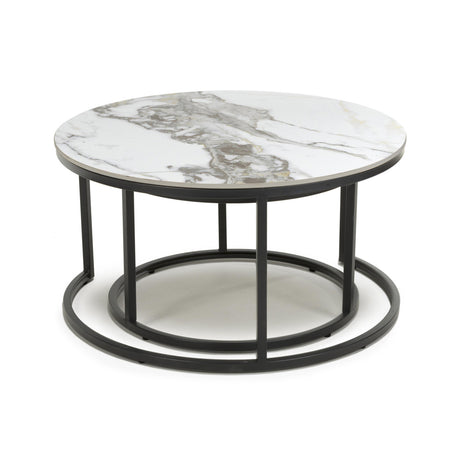 In stockSale price £89.95 Regular price £197.95Unit price /Unavailable Crystal Clear Marble Effect Glass Top Nest Of 2 Tables - Alisma