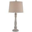 Beige Linen Shade Table Lamp With Textured Wooden Base - Stella