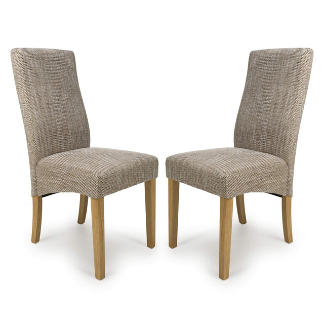 The Bailey Set of 2 Fabric Dining Chairs with Natural Rubber wood Legs, available at CozyFurnitureDirect, offers a timeless blend of elegance and comfort for any dining room. Upholstered in a fashionable oatmeal tweed fabric, these chairs bring a soft, versatile texture that pairs beautifully with a variety of dining tables and decor styles. The wave back design adds a classic silhouette, while the sprung and belted seat ensures exceptional comfort and support during mealtimes. Finished with sturdy natural rubber wood legs, the Bailey chairs combine durability with refined style, making them an ideal seating choice for UK homes.