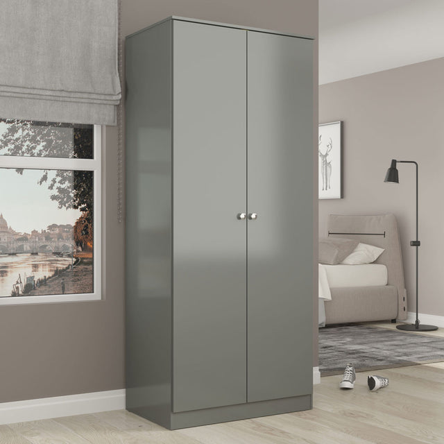 Add sleek sophistication to your bedroom with the Denver High Gloss Wardrobe With 2 Doors from CozyFurnitureDirect, crafted for British homes seeking style and practicality. This striking wardrobe boasts a high gloss finish for a contemporary look and is built from sturdy composite board with a robust plastic veneer that's easy to maintain. Inside, a spacious hanging area with a strong metal rail and top shelf ensures clothes and accessories are easily organised, while durable MDF panels and smooth metal hinges provide lasting reliability. The modern metal handles, protective plastic feet and an included anti-tip strap guarantee safety and convenience. Elevate your space with this functional and elegant storage solution.