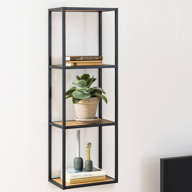 Bring modern industrial style to your home with the Seaford Wall Hung Metal Shelving Unit with Wooden Shelves, available at CozyFurnitureDirect. Finished with a matte black steel frame and two rustic wild oak effect shelves, this wall-mounted shelving unit offers a perfect balance of sophistication and practicality. Ideal for displaying decorative pieces, books, or plants, it maximises wall space while enhancing the charm of contemporary interiors. Lightweight yet durable, this elegant shelving unit is designed to provide both function and style for UK homes.