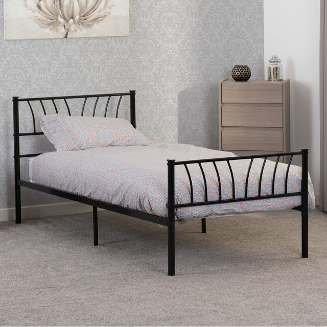 Introduce sleek and sturdy simplicity to any bedroom with the Harlow Metal Single Bed from CozyFurnitureDirect, designed for UK homes that value timeless style and robust construction. Crafted entirely from strong metal with a clean, minimalist frame, this single bed features a high headboard centre height of 870mm and a matching footboard post height of 655mm, providing elegant proportions. Supported by 14 durable metal slats, the bed base ensures excellent mattress support and comfort. With practical side rail and bed base clearances for easy under-bed cleaning and a maximum weight capacity of 100kg, the Harlow bed offers a reliable and space-efficient option ideal for guest rooms, children's bedrooms or compact urban living.