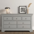 Enhance your bedroom organisation with the Bordeaux Wooden Chest Of 5 Drawers from CozyFurnitureDirect. Crafted from sturdy MDF and oak, finished in an elegant matt paint, this chest offers a stylish storage solution ideal for modern British homes. Featuring five spacious drawers three smaller and two larger that glide smoothly on pine runners with durable plywood bases, it provides versatile options for clothing, accessories and linens. Complemented by sophisticated metal and wooden handles, protective plastic feet and a robust 18mm thick top, the Bordeaux chest combines classic design with everyday practicality and lasting quality.