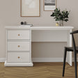 Work in style and comfort with the Wooden Desk for Home and Office with 3 Drawers - Paris, available at CozyFurnitureDirect. Combining romantic French-inspired charm with modern functionality, this desk is an elegant addition to any workspace or home office. With three spacious drawers mounted on easy-glide runners, it provides practical storage for stationery, documents and daily essentials. Crafted in Denmark from PEFC-certified sustainable wood, this desk is constructed with a durable laminated board that is resistant to scratches, moisture and heat. Designed to be both functional and stylish, the Paris desk brings sophistication and long-lasting quality to UK workspaces.