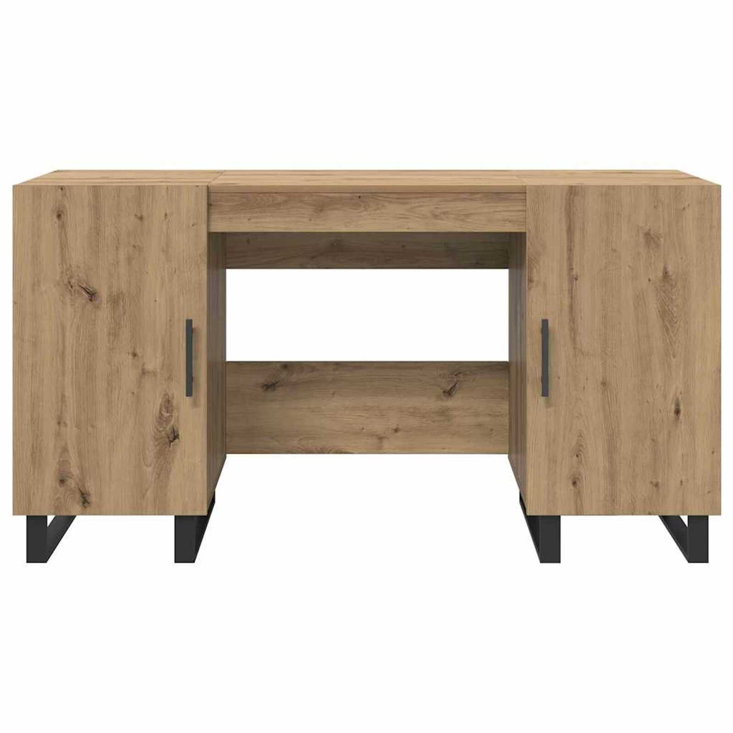 Enhance your workspace with the Wooden Desk for Home and Office with Black Handles by Vantage Home, available from CozyFurnitureDirect UK. Combining modern practicality with an understated industrial edge, this desk is perfect for creating a productive and stylish environment in any home. Made from High - quality engineered wood with sturdy iron legs, this desk provides long - lasting strength, stability and resistance to daily wear. Its sleek 140cm worktop gives you plenty of space for laptops, monitors and paperwork, while the four side compartments with doors keep your essentials neatly stored away and dust-free. The bold black iron handles add a touch of minimalist sophistication, making this desk a versatile piece that fits effortlessly into UK homes of all sizes, from compact flats to dedicated offices. At CozyFurnitureDirect, were committed to providing work-friendly furniture that blends function with contemporary style.