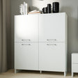 - Includes 4 doors concealing 8 shelves, each with generous space for books, accessories, or essentials