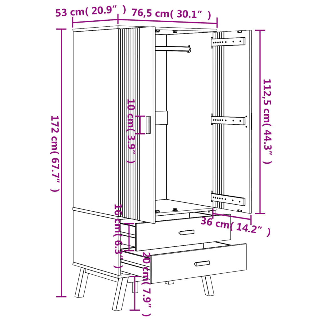Wooden Wardrobe With 2 Doors And 2 Drawers - Olden
