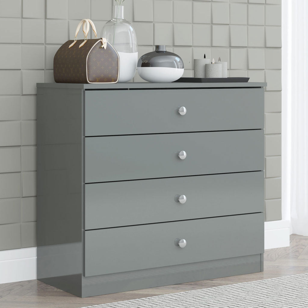 - Modern high gloss plastic veneer finish brightens any bedroom space