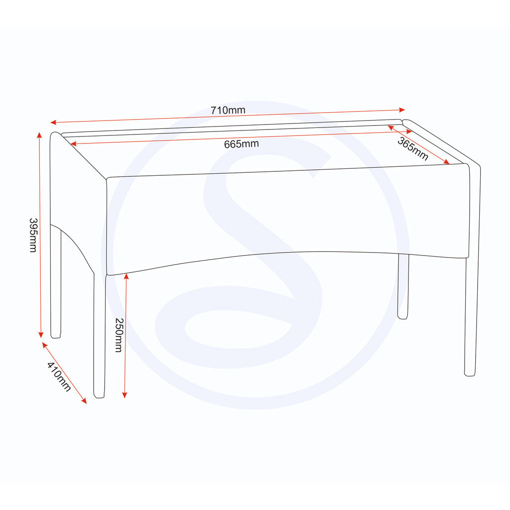 - Tempered glass table top (W665 x D365 mm, 5 mm thick) providing an easy-to-clean, smooth surface